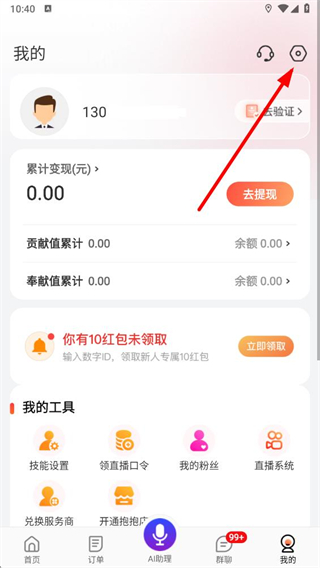 2、在我的頁面中,找到右上角的設(shè)置圖標(biāo)并點(diǎn)擊,進(jìn)入應(yīng)用的設(shè)置功能頁面。
