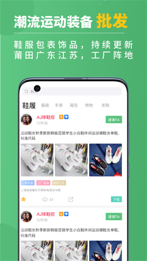 運(yùn)動(dòng)鞋貨源是一款可以幫助用戶輕松的在線查找各種貨源的平臺(tái),這款軟件為所有的用戶提供了非常多的商品資源,輕松的在線查看很多的內(nèi)容也是非常的簡單,還有很多的服務(wù)信息也是免費(fèi)的在線了解,你喜歡的各種商品都在這里。