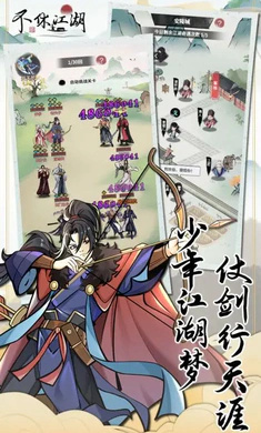 不休江湖是一款江湖武俠類型的放置休閑游戲,在其中只需要玩家盡情的探索江湖故事就可以完成游戲的體驗(yàn),會(huì)有各種江湖呈現(xiàn)給玩家,滿足玩家的武俠夢(mèng),更多劇情會(huì)出現(xiàn)其中,類似于電視劇情,擁有連續(xù)的游戲江湖豪情。