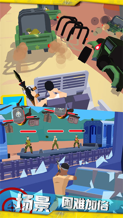 戰(zhàn)線突擊游戲?qū)?huì)帶來一場(chǎng)激烈的戰(zhàn)斗,會(huì)有各種不同場(chǎng)景的戰(zhàn)斗過程,讓玩家可以自由的進(jìn)行嘗試,會(huì)有更多獨(dú)特的射擊游戲體驗(yàn),讓所有的玩家可以感受戰(zhàn)爭(zhēng)的魅力,雖然其中采用卡通方塊的游戲畫面,但是也會(huì)有激烈的場(chǎng)景。