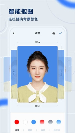 2、制作屬于自己的證件照,智能的證件照照片一鍵美顏起來,讓我們的證件照漂亮;