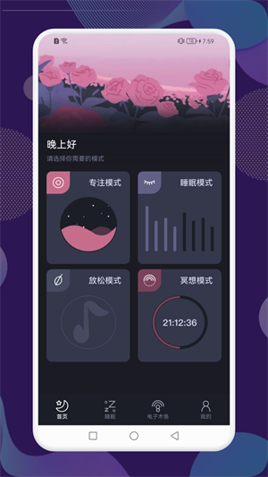 - 為用戶提供了專注模式、睡眠模式、放松模式、冥想模式等四個板塊,需要的用戶都可以根據(jù)自己的需求選擇;