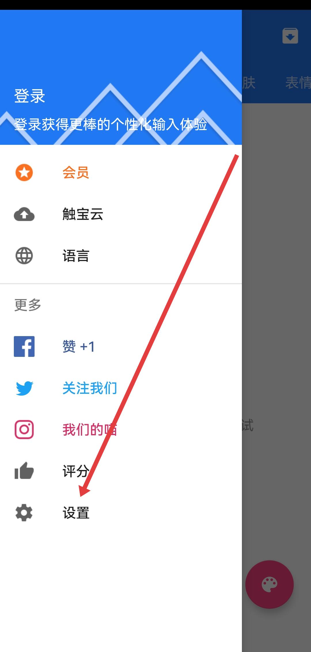 1、在觸寶輸入法側(cè)邊欄菜單中,點(diǎn)擊設(shè)置的選項(xiàng),進(jìn)入設(shè)置的界面。