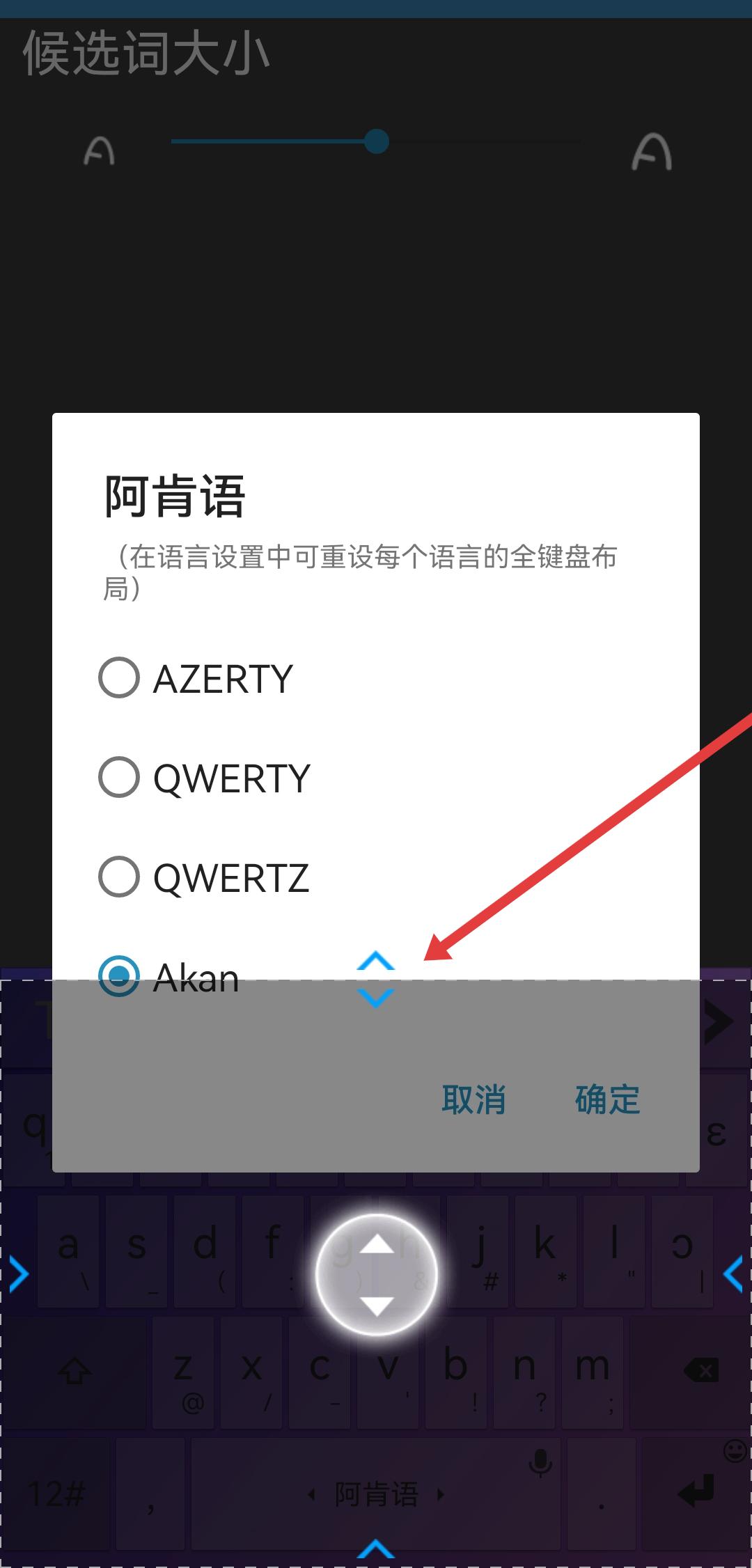 安裝設(shè)置好輸入法后首次打開(kāi)輸入界面彈出鍵盤(pán)設(shè)置,即可設(shè)置自己想要的鍵盤(pán)及候選詞大小,體驗(yàn)良好