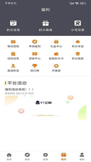 97企鵝游戲盒子針對正版手游,BT手游,H5游戲折扣福利平臺,在這里可以找到各種極受歡迎的熱門游戲,更有超多h5游戲點開即玩,各種福利大放送,我們可以下載體驗,各種各樣的熱門游戲和福利的禮包在里面可以隨意的領(lǐng)取。