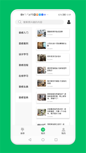 - 覆蓋了各種裝修入門、案例、學習設(shè)計、裝修流程、裝修頭條等內(nèi)容,各種類型的信息都是會進行詳細的分類。