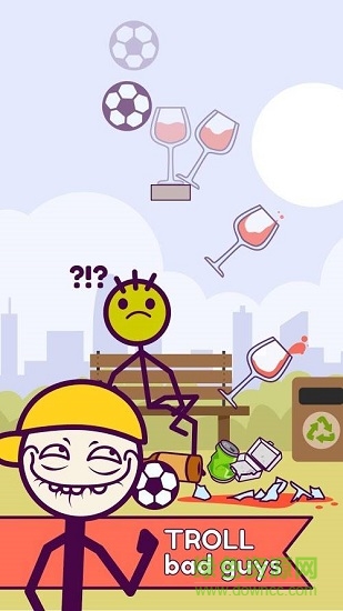 火柴人是壞人。落球,打破了眼鏡來阻止他。如果所有的眼鏡不落,他仍將是破壞性的。打破眼鏡與你的小滴盡可能球的數(shù)量。你就贏了。通過有創(chuàng)意挑戰(zhàn)自己,不要害怕去思考開箱!大量的物理難題都在等著你。拿起你的球,打破一切。 這很容易埋下了伏筆。但是,如果你想實(shí)現(xiàn)所有3星級它很難。