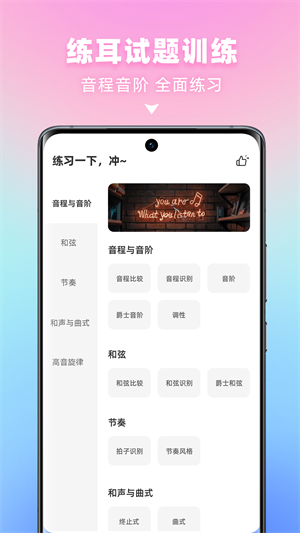 視唱練耳是一款專為需要學(xué)習(xí)音樂(lè)技巧的用戶打造的在線查看各種課程資源的應(yīng)用,所有的用戶都是可以非常簡(jiǎn)單的直接在線學(xué)習(xí)很多的內(nèi)容,還有各種幫助用戶學(xué)習(xí)唱歌技巧的功能也可以使用,我們這里的所有課程資源也是非常的豐富。通過(guò)視唱練耳app安卓版可以隨時(shí)在線進(jìn)行音樂(lè)課程訓(xùn)練,內(nèi)容豐富逐步進(jìn)階,滿足更多需求,歡迎下載。