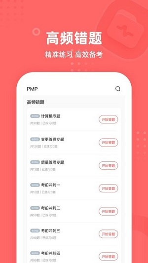 pm圈子在軟件里面主要是刷題為主,我們將各自的考試類型分類,可以專門的去刷題,快速的提高自己的成績,也為我們的學(xué)習(xí)時間來做了一個統(tǒng)計,可以看到學(xué)習(xí)的時長,更好的數(shù)據(jù)顯示展示出來,也擁有著一個錯題本來改正我們的錯誤。