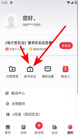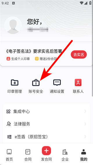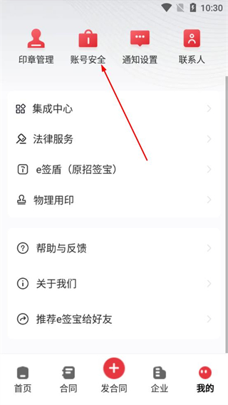 1、打開e簽寶APP,點(diǎn)擊底部我的選項(xiàng),進(jìn)入個(gè)人頁(yè)面。
