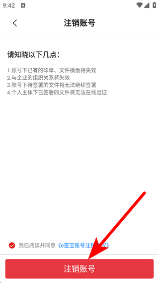 4、在注銷須知頁(yè)面,點(diǎn)擊注銷賬號(hào)按鈕,完成賬號(hào)注銷的操作。