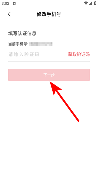 4、在修改手機(jī)號(hào)頁(yè)面,輸入驗(yàn)證碼后點(diǎn)擊下一步,按照提示完成更換。