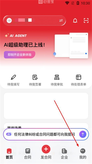 1、打開e簽寶APP,需要點(diǎn)擊右下角我的按鈕,進(jìn)入個(gè)人頁(yè)面。