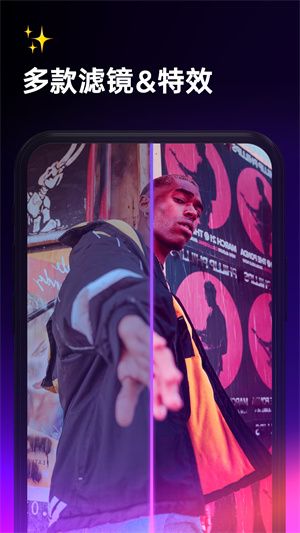- 多款濾鏡、特效在線選擇使用,用各種各樣的濾鏡和特效豐富你的視頻效果,使其變得優(yōu)質(zhì);