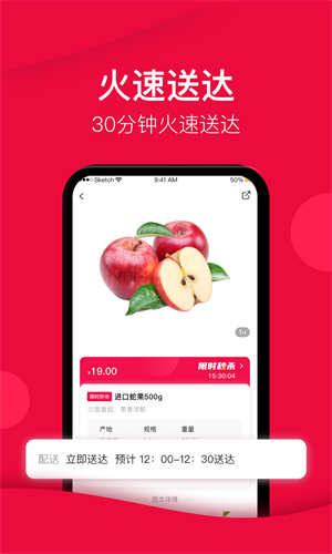 - 每天都是火速送達,半小時快速送到家中,可指定時間段配送,還能實時顯示配送地址,了解進度。