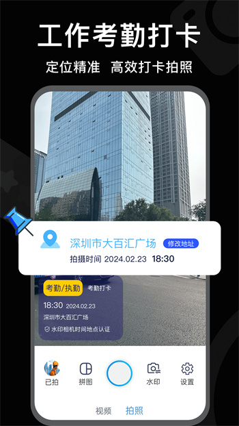 3、辦公和外勤打卡必備的水印相機,直接拍攝也可以自動添加。
