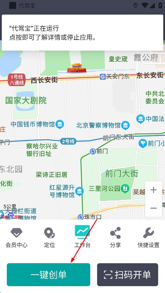1、打開代駕寶應(yīng)用,在主界面找到“一鍵創(chuàng)單”按鈕,點擊該按鈕,進入創(chuàng)單頁面。
