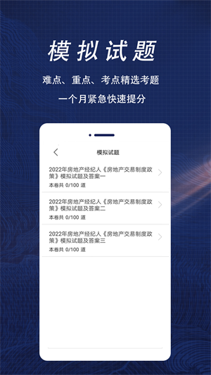 - 涵蓋了全國(guó)房地產(chǎn)經(jīng)紀(jì)人職業(yè)資格考試大綱所確定的范圍,可以更好的幫助所有的用戶都能輕松的在線學(xué)習(xí);