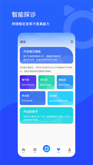 4、智能探診:持續(xù)穩(wěn)定發(fā)揮才是真能力 知識(shí)點(diǎn)、考點(diǎn)、技巧、題型探診,多類別專項(xiàng)探診,多維度專項(xiàng)訓(xùn)練,持續(xù)穩(wěn)定提升學(xué)生綜合能力;