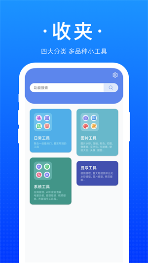 收夾是一款手機(jī)工具箱,提供了豐富的小工具給大家選擇使用,每個(gè)小伙伴可以根據(jù)自己的需求選擇對應(yīng)的工具,都是簡單的小工具,上手簡單易使用,隨時(shí)隨地在線便捷設(shè)置使用,為大家?guī)砹藘?yōu)質(zhì)的服務(wù),滿足每個(gè)小伙伴的使用需求。