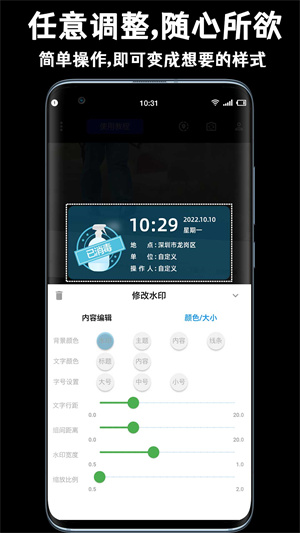 - 用戶可自定義定位、時(shí)間、水印、經(jīng)緯度,以及調(diào)整字體大小顏色和縮放比例等等,非常簡(jiǎn)單的操作就能編輯。