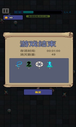 過(guò)打敗怪物,拾取經(jīng)驗(yàn)升級(jí),玩家在游戲中扮演一名身懷絕技的人物,獲得更加強(qiáng)力的技能,本游戲具備一定的操作能力,玩家通過(guò)走位操作以及技能搭配,提高自己的生存時(shí)間的游戲。