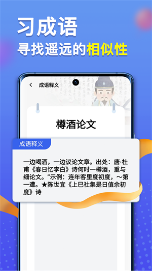 - 豐富的成語庫讓大家學習更多的成語故事,超多先賢典故知識內容,每天都能自由學習;