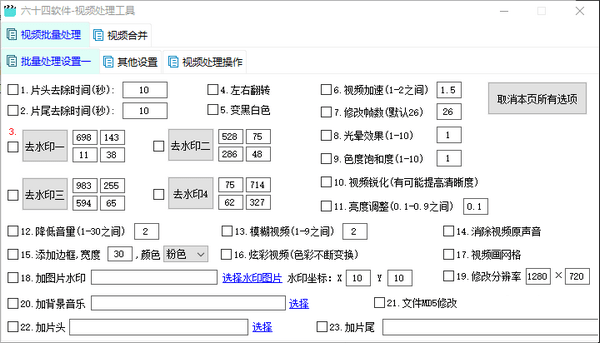 六十四視頻處理工具是一款基于ffmpeg制作非常出色的視頻處理軟件,它具備了超實用的視頻處理功能,一共有20多項功能,讓你可以更好的處理視頻,高效快速的完成自己的工作內(nèi)容。