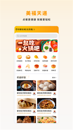 美福天遞是一款生活服務(wù)應(yīng)用,帶來(lái)外賣(mài)配送服務(wù),包含了超多類型的美食讓大家自由選購(gòu),一鍵在下下單配送到家,讓大家的外賣(mài)點(diǎn)餐更加輕松,提供豐富的美食,自由選擇你位置附近的美食下單,用手機(jī)就能快速下單點(diǎn)餐,外賣(mài)員直接配送到家。