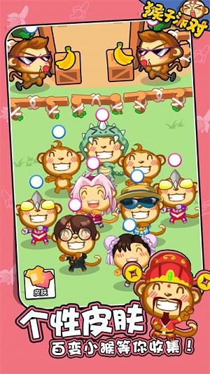 猴子派對是一個趣味性的休閑游戲,在游戲里面擁有著更多的玩法模式,大家可以去隨意自由的嘗試起來,豐富的主題模式等著我們?nèi)ネ瓿?,很多更多的游戲關(guān)卡和任務(wù),還擁有著不同的個性皮膚去使用解鎖。