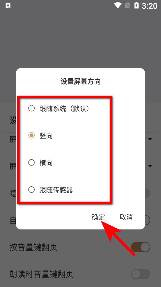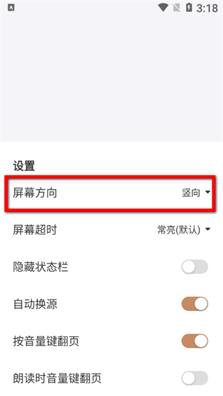 3、在設(shè)置頁(yè)面,點(diǎn)擊屏幕方向選項(xiàng),彈出設(shè)置屏幕方向的選擇框。