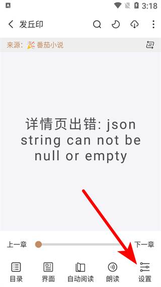 2、在小說(shuō)閱讀界面,點(diǎn)擊右下角設(shè)置選項(xiàng),進(jìn)入設(shè)置頁(yè)面。