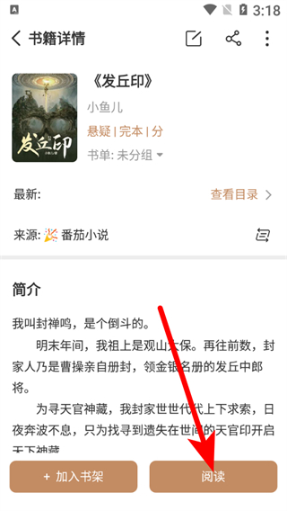 1、在千島小說(shuō)書(shū)籍詳情頁(yè)面,點(diǎn)擊閱讀按鈕,進(jìn)入小說(shuō)閱讀界面。