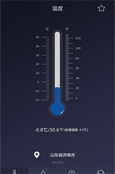 實時溫度計app是一款能夠?qū)崟r測量溫度的手機軟件,能夠根據(jù)當前的定位精準的檢測出當前位置戶外的溫度,和戶外的一個濕度情況,可以為大家日常出行提供一個很好的參考提示,讓大家能夠更好的選擇外出的時間,不需要害怕出門后天氣突變,突然升溫或是降溫等情況。