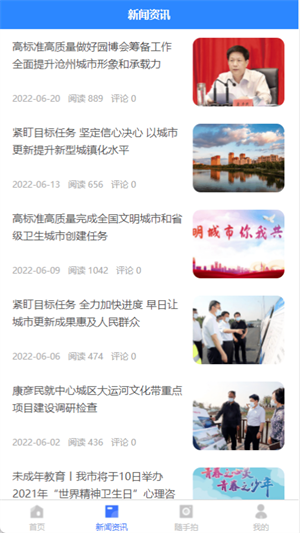 - 實現(xiàn)文明休閑拍攝、志愿服務(wù)等功能,文明舉報等公眾互動功能,每天定時更新全球新聞和本地的資訊;