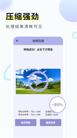 - 在不影響觀看質(zhì)量的情況下,可以更好地壓縮,不再害怕文件空間大,提供更實用的功能。