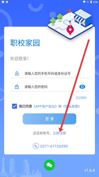 1、在職校家園登錄頁面中,如果沒有賬號(hào)可以點(diǎn)擊下面的注冊按鈕進(jìn)行注冊。