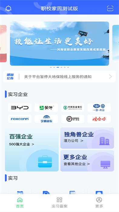 職校家園最新版是一款為現(xiàn)在的職校學(xué)生群體打造的校園服務(wù)類型的手機(jī)應(yīng)用軟件,該應(yīng)用中的含有超多豐富的功能可以幫助在職校學(xué)生們的線上報(bào)名參加各單位的實(shí)習(xí),同時(shí)老師可以在這里查看入職的阿單位在平時(shí)對學(xué)生實(shí)習(xí)情況的評(píng)價(jià)。
