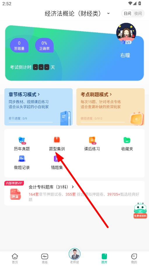 2、在題庫界面里,選擇題型集訓選項,進入題型集訓設置頁面。