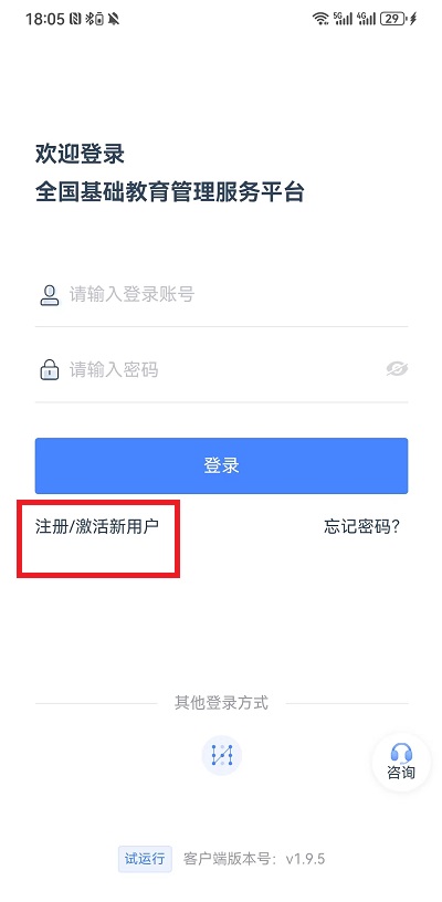 2、在登錄頁面,可以看到左下方會有一個(gè)【注冊\激活新用戶】去進(jìn)行賬號的注冊;