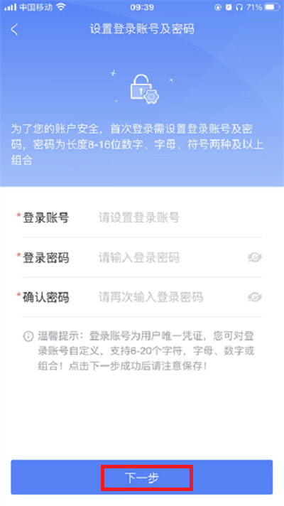 5、完成注冊之后需要設(shè)置自己的登錄賬號以及密碼,設(shè)置完成即可準(zhǔn)備登錄;