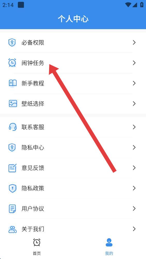 2、在個(gè)人中心頁面里,找到并點(diǎn)擊鬧鐘任務(wù)選項(xiàng),進(jìn)入鬧鐘任務(wù)的設(shè)置界面。
