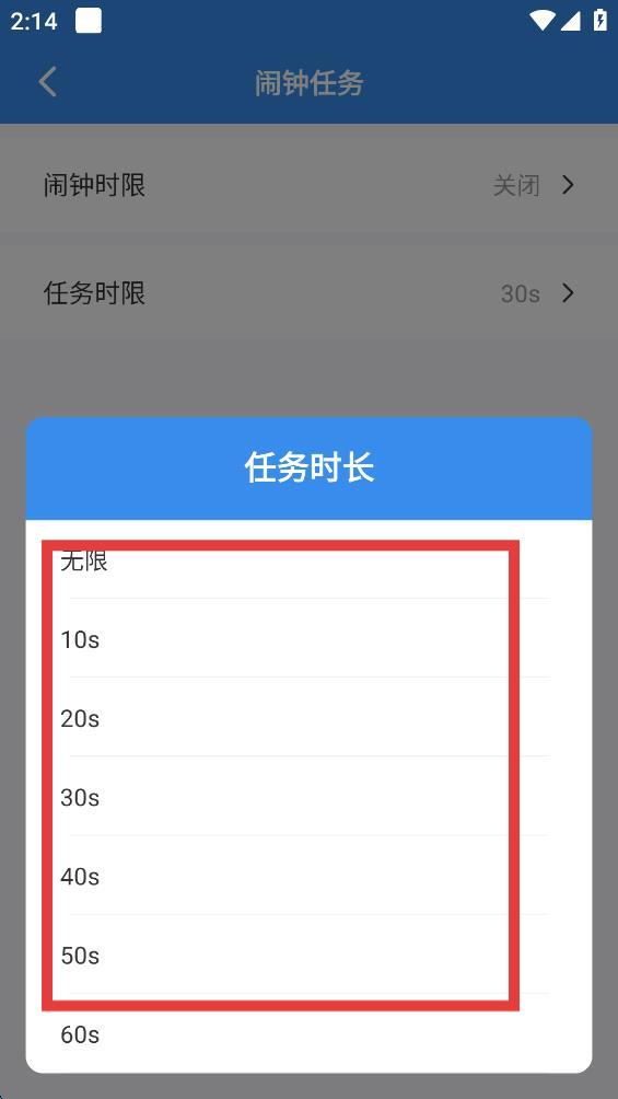 3、在鬧鐘任務(wù)設(shè)置界面中,找到任務(wù)時(shí)限相關(guān)選項(xiàng)并點(diǎn)擊。