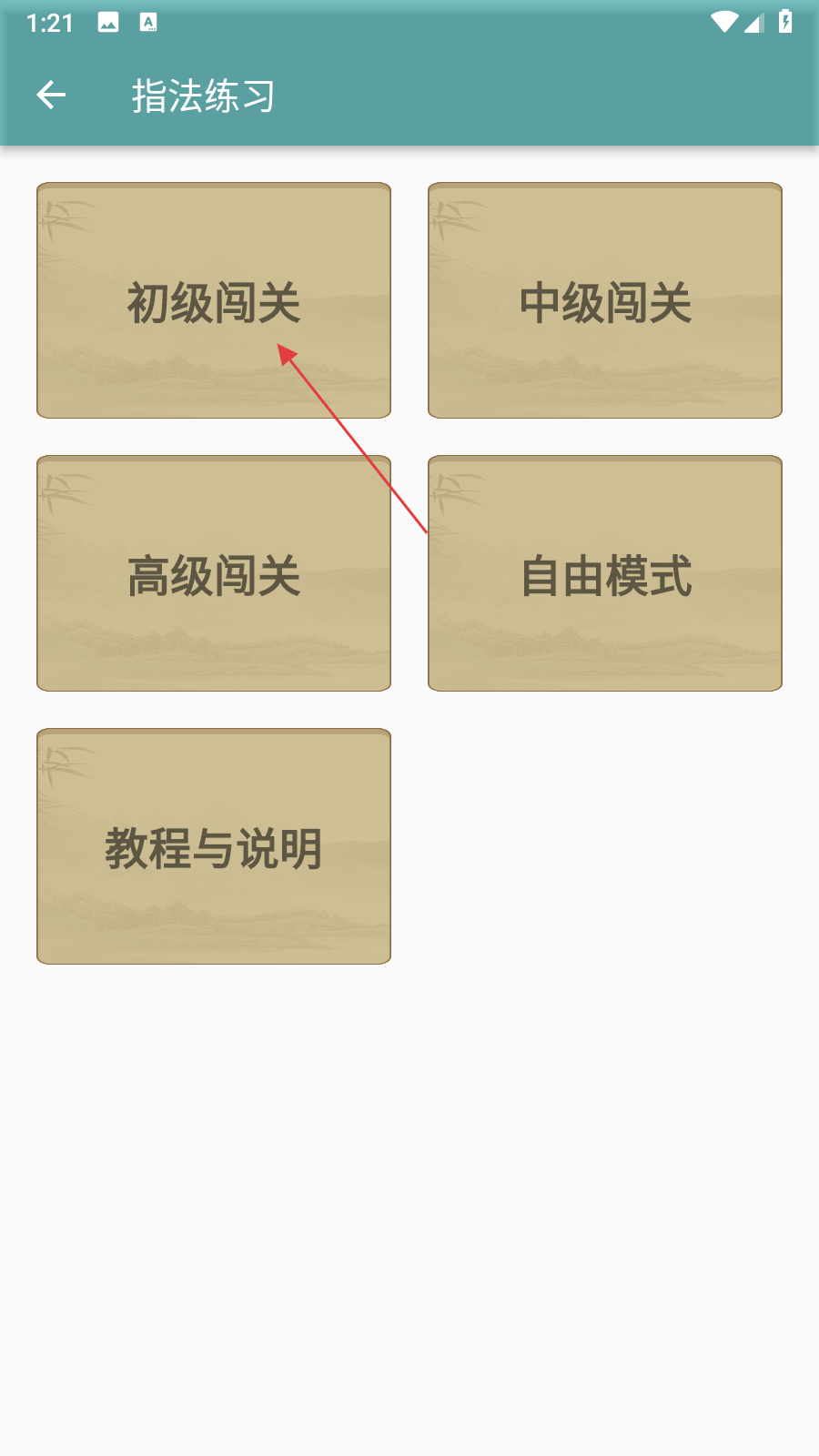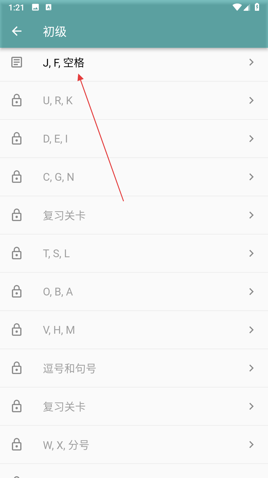 3、在初級闖關(guān)的關(guān)卡列表中,點擊首個可練習(xí)的關(guān)卡。