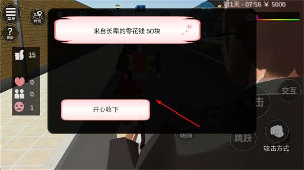 3、遇到如來自長輩的零花錢等事件時,點(diǎn)擊開心收下獲取獎勵,積累資源。
