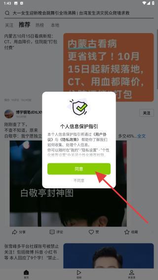 1、打開愛看APP,進(jìn)入時會彈出個人信息保護(hù)指引,點(diǎn)擊同意的按鈕。