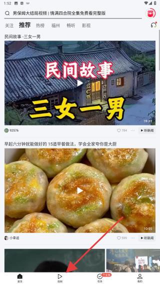2、進(jìn)入到首頁內(nèi),點(diǎn)擊導(dǎo)航欄中視頻的圖標(biāo)。