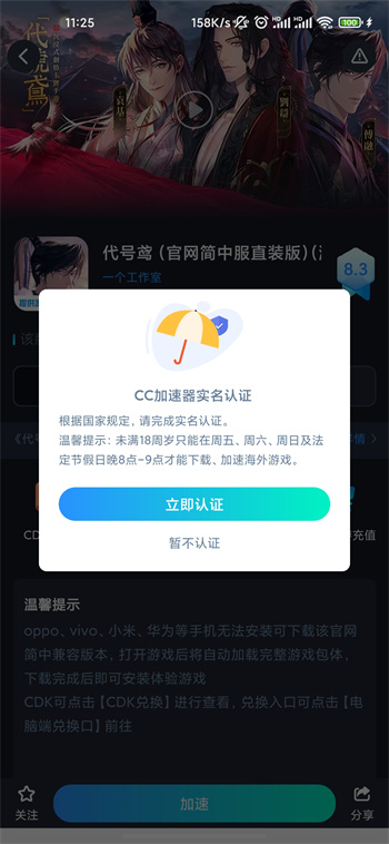 2、下一步完成加速器實(shí)名認(rèn)證,選擇直接立即認(rèn)證,要不然繼續(xù)玩不了游戲;
