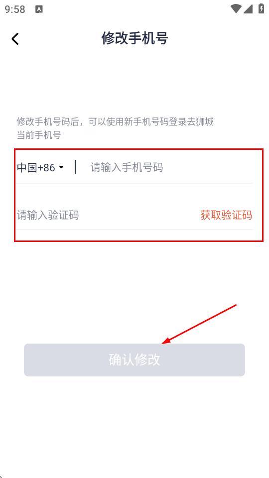4、在修改手機(jī)號頁面,輸入新的手機(jī)號碼,填入驗(yàn)證碼,點(diǎn)擊確認(rèn)修改。