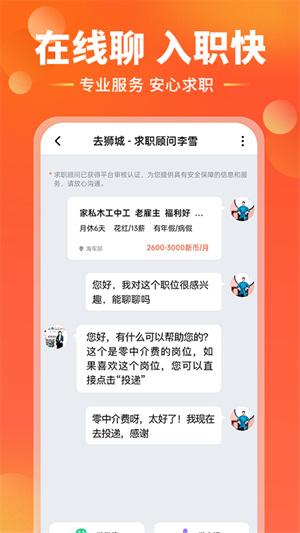 去獅城招聘app是一款非常輕松的在手機(jī)上就能找到滿意工作的軟件,需要找工作或者換工作的用戶都是可以免費(fèi)的進(jìn)行求職,也會(huì)為用戶推薦很多比較需要的職位信息,幫助更多用戶輕松的找到工作,在這里的信息也可以保障真實(shí)性。